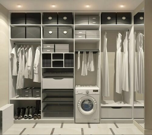 Стиральная машина может быть умело встроена в гардеробную, чтобы сохранить чистоту и порядок в доме. Различные варианты компактных моделей и способы их скрытия позволяют создать функциональное и привлекательное пространство.
