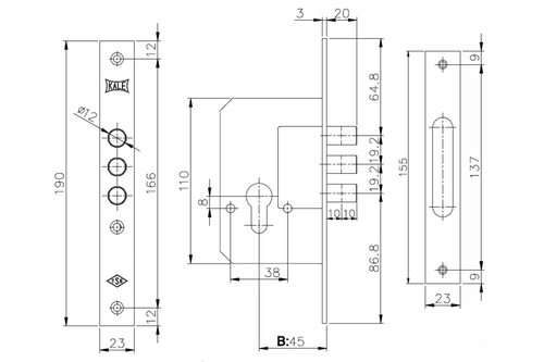 Устройство врезного замка Kale представляет собой...