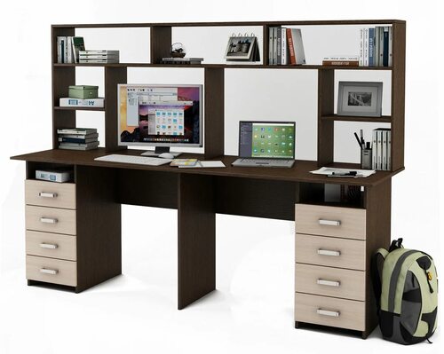 Фотографии компьютерных столов для двоих с надстройкой